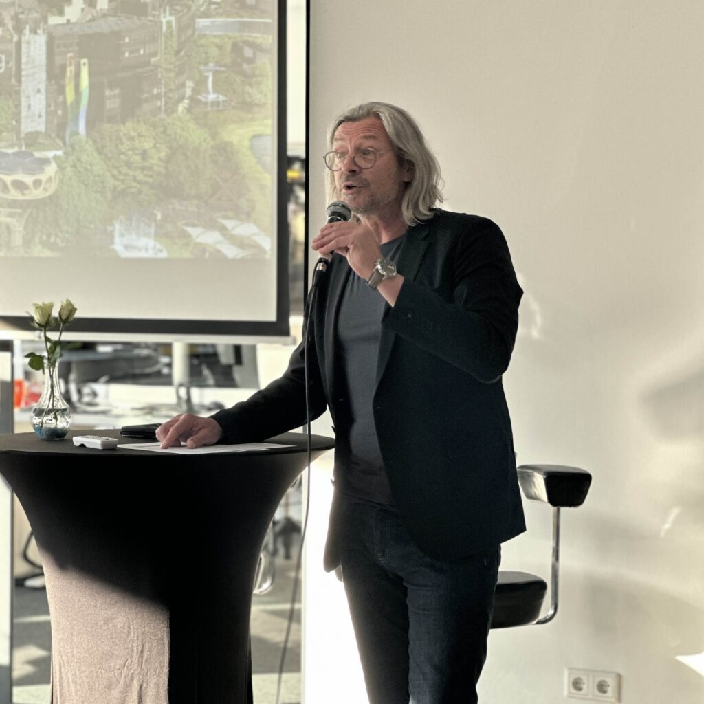 Architekt Gerhard Feldmeyer (ehem. Geschäftsführer HPP Architekten) veranschaulichte das Konzept der „Schwammstadt“ und präsentierte visionäre Ideen zur Rückgewinnung von Grünflächen – von Dachbegrünungen und Stadtbäumen bis hin zu Beispielen wie dem Naschmarkt in Wien. Sein Appell war klar: Der öffentliche Raum gehört den Menschen – und Regenwasser muss versickern. Jetzt ist die Zeit zu handeln!