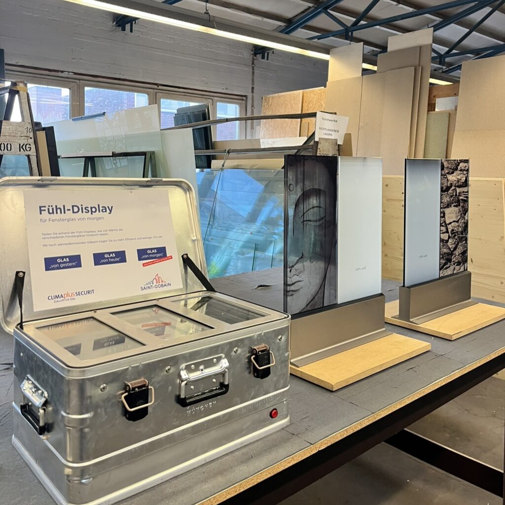 Ebenso bedanken wir uns bei Schwan Glas und Saint-Gobain für die Ausstellungsstücke sowie die anschaulichen Beispiele realisierbarer, moderner und energiesparender Glaslösungen.
