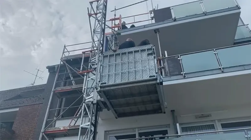 Errichtung des Aufzugturms am Bahnhof Bonn-Buschdorf.